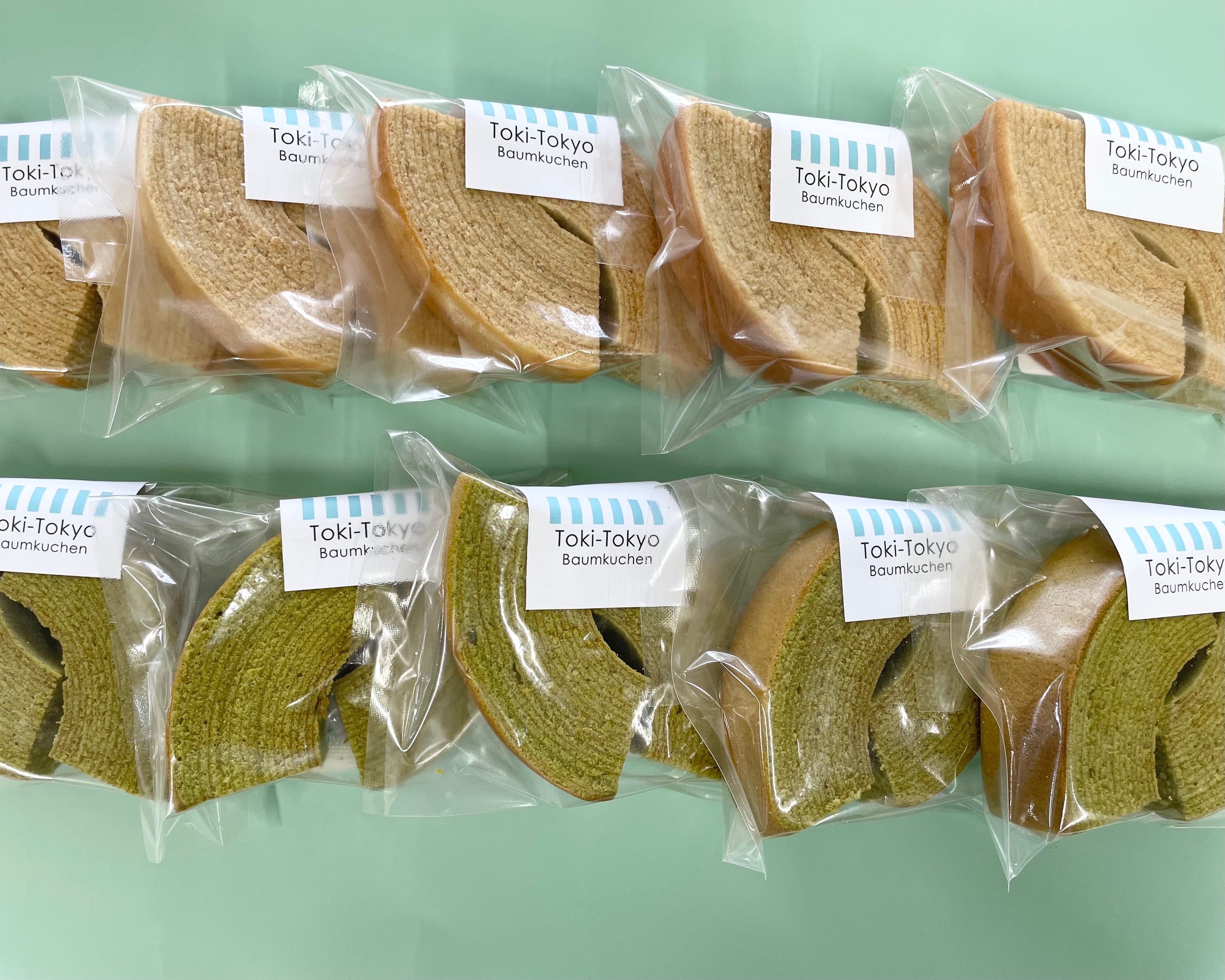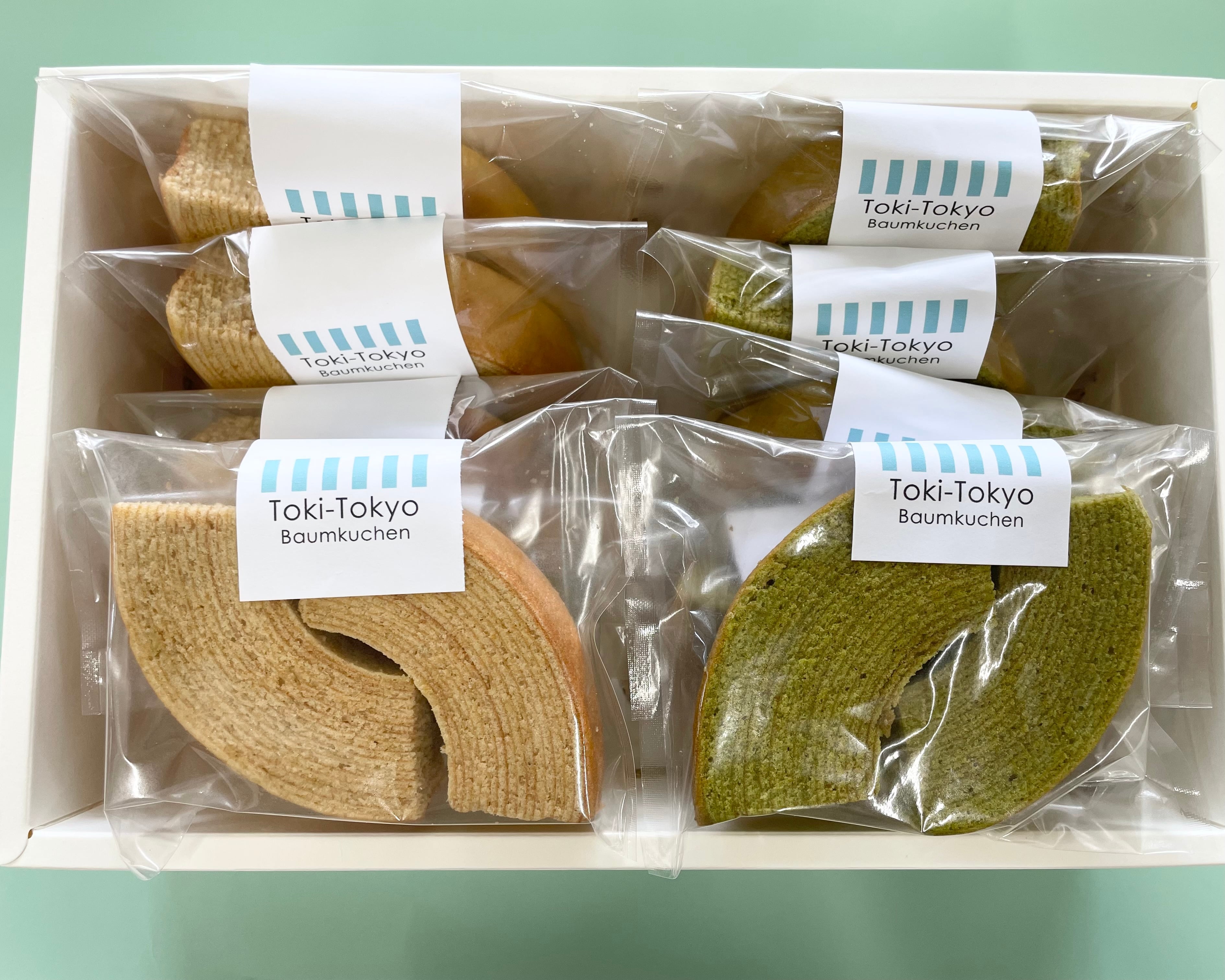 Toki-Tokyoの人気バウム「クラシックバウム」と「宇治抹茶バウム」を食べやすくカットして2個入にしました。