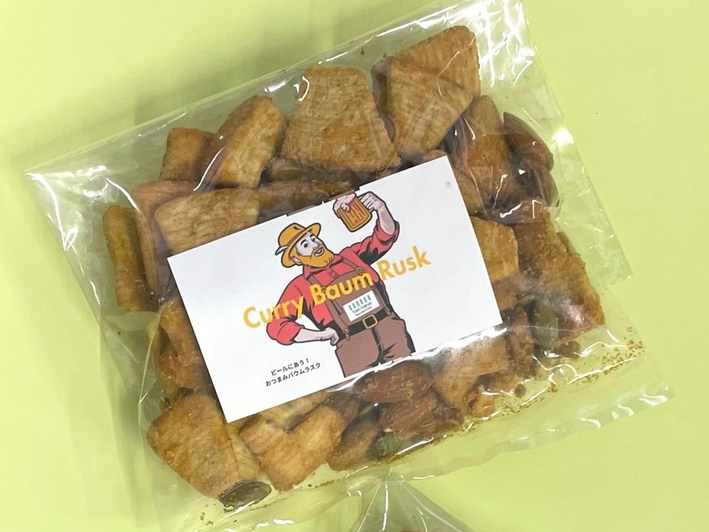 YAMITSUKI バウムラスクは、バウムクーヘンを香ばしく焼き上げ、カレー風味にアレンジ。カレー味のナッツもたっぷり入っています。ビールにも小腹が減った時にもぴったり!一度食べたら止まらない新感覚のラスクです。